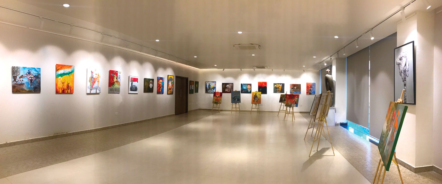 • 1600 sq.ft. of vibrant exhibition space designed to display over 60 artworks.