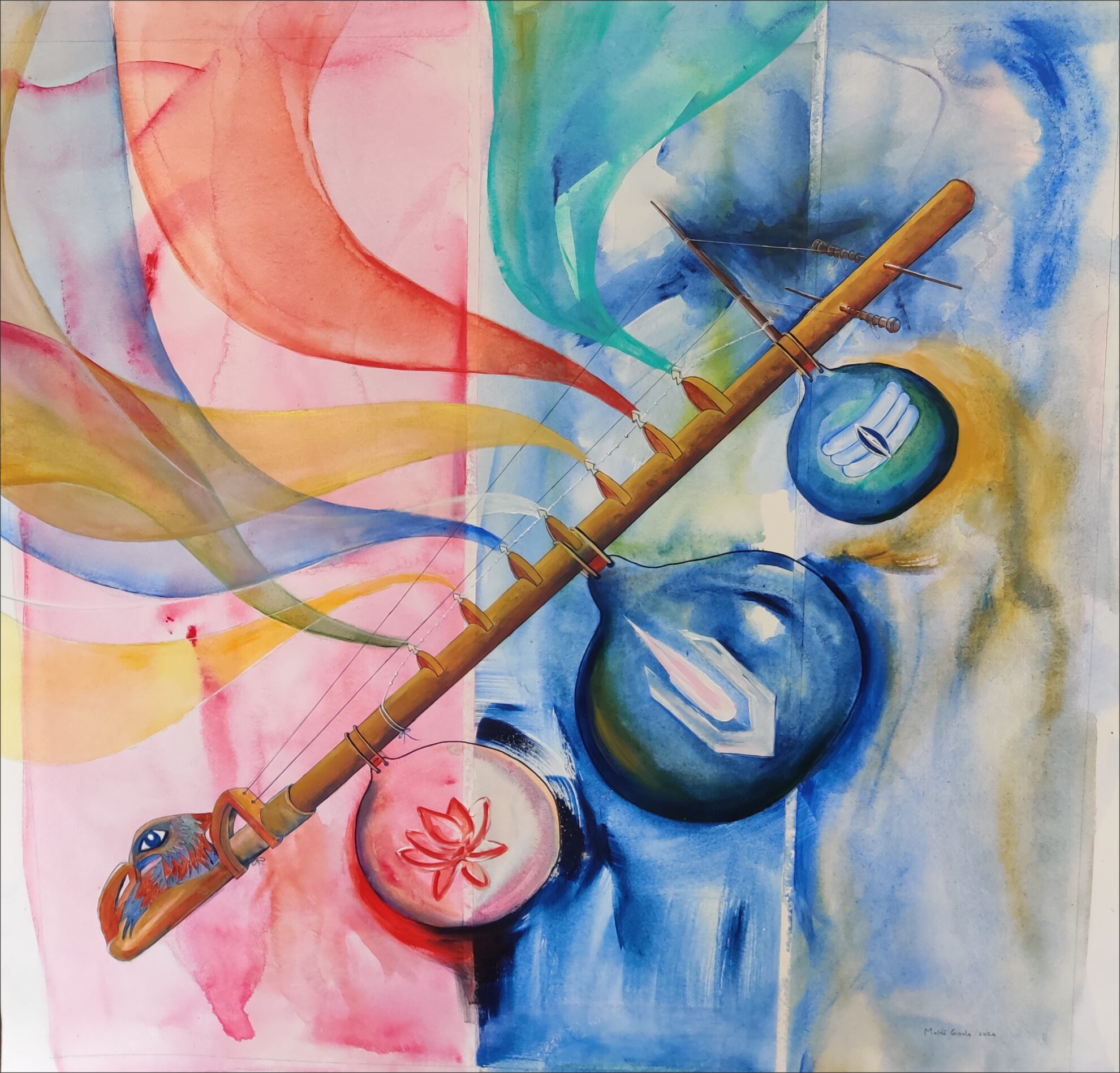 The true essence of my process lies in visual metaphor—using shapes, colors, and textures to symbolize sound, rhythm, and emotion. I often draw parallels between musical elements (like the flow of a raga or the repetition of a tala) and visual principles (like movement, repetition, and contrast). The goal is to make the viewer feel the music, not just see it.